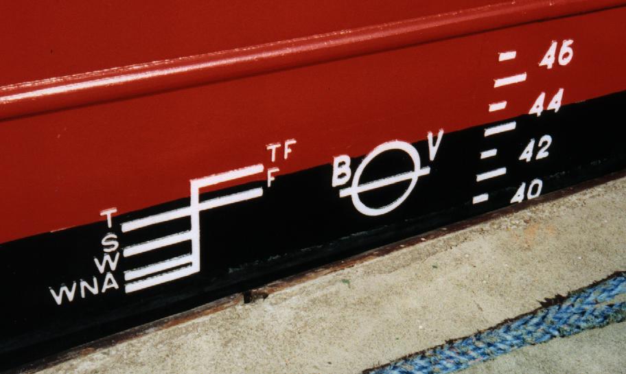 V teplé sladké vodě, například na velkých řekách, má voda menší hustotu a lodě sa noří hlouběji. Na řekách ale nevznikají velké vlny, proto může mít loď menší volný bok. Naopak v severním Atlantiku je povolený ponor snížený, aby měly lodě dostatečnou rezervu vztlaku a mohli čelit vysokým vlnám a špatnému počasí. Středem je teplá slaná voda (S) – tato čára prochází i kruhem, který bývá doplněn o písmena klasifikační společnosti, například BV (Bureau Veritas) nebo LR (Lloyd’s Register).