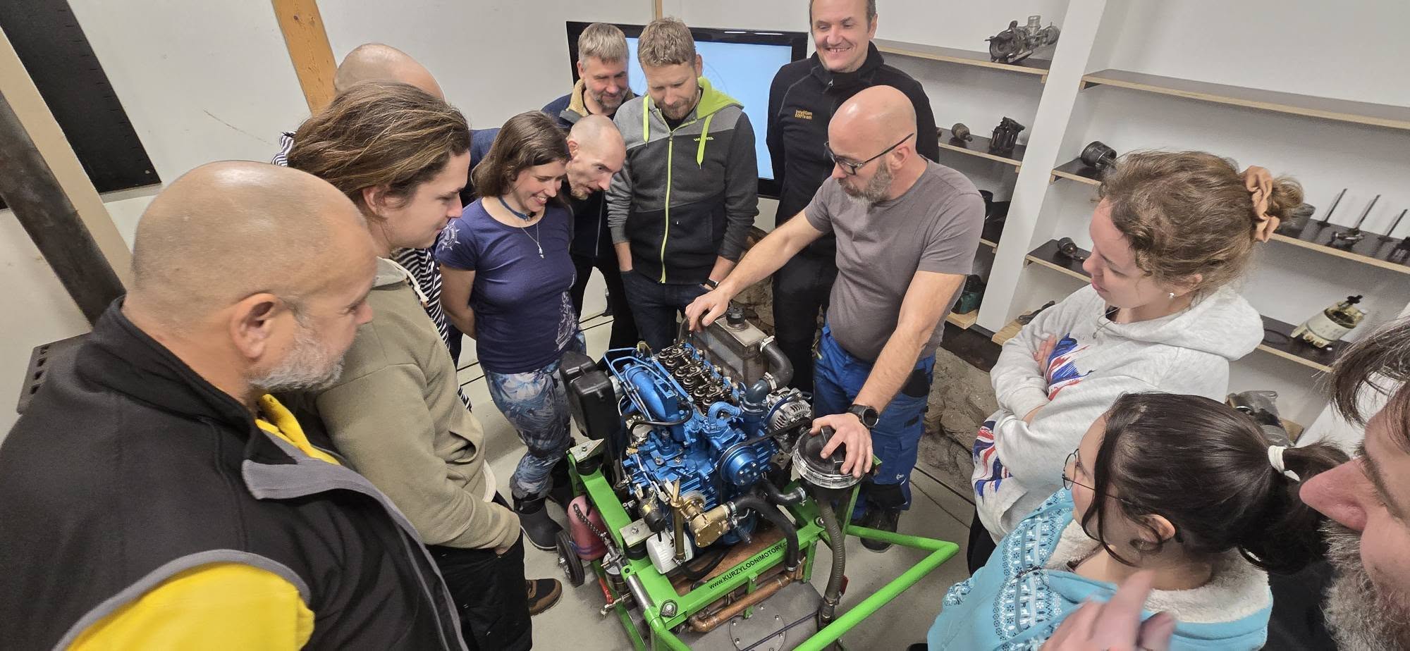 V Česku už několik let specializované kurzy lodních motorů pořádá Tomáš Hubáček. Pro členy posádky La Grace připravil mírně upravený celodenní kurz. Zohlednil, že La Grace má kromě velkého turbo dieselu MAN i dva generátory a jeden větší přívěsný motor v člunu. Centrálním bodem výuky je funkční tříválec, jaký najdete ve většině produkčních lodí z posledních třiceti let. Tomáš se ve výkladu věnuje i moderním motorům s vyšší mírou elektroniky a common-rail vstřikováním.