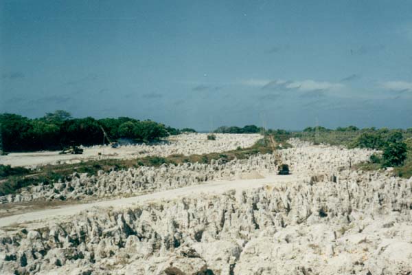 Zatímco vláda promrhala miliony, ostrov umíral. Těžba fosfátů je barbarský proces. Ornice se odstraní a poté bagry vyhrabou skálu zpod korálových vrcholků. V důsledku toho se 80 % ostrova proměnilo v měsíční krajinu. Ostré vápencové pilíře, na kterých nic neroste. Život je tam nemožný a lidé se tísní na úzkém pobřežním pásu.